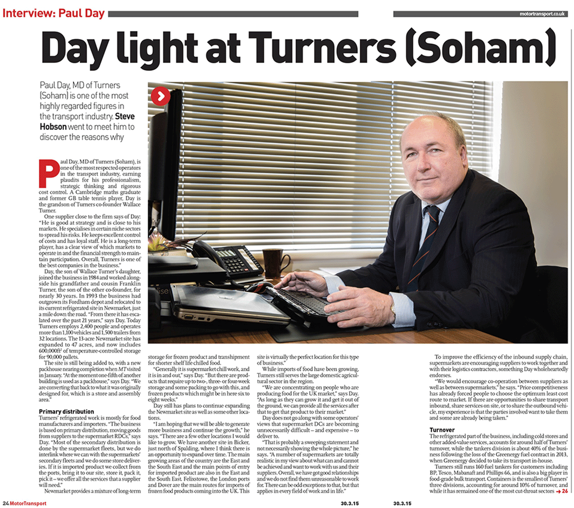 Motor Transport recently published (March 30th) a comprehensive and in-depth interview with our Managing Director Paul day. It gives a rare insight into Pauls business logic and how Turners have maintained its dominant position within key Transport Industry segments.