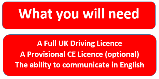 The training is available to anyone that has a Category B licence (Car) and would like to gain the Category CE level. There is no initial up front cost and we arrange for the fees to be paid back gradually through your wages.