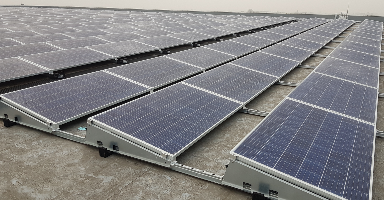 The Solar PV array was commissioned on the 22nd November following 4 weeks of installation works by Watt Energy Saver. We have installed over 1,100 panels on the roof using a free-standing mounting system which is weighted down using ballast.