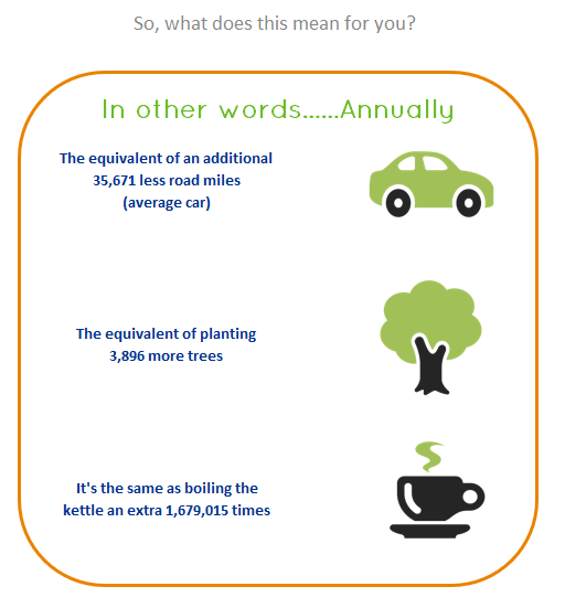 This is equivalent to CO2 savings of 148,000kg per year.